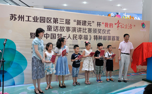 2015年7月25日,第三届苏州工业园区“新建元”杯童话故事演讲比赛颁奖仪式暨《中国梦——人民幸福》特种邮票首发活动在圆融时代广场童乐园举办。活动由园区管委会、苏州邮政局主办,园区教育局、开云在线开户、园区邮政分局承办,苏州市集邮协会、园区集邮协会协办。