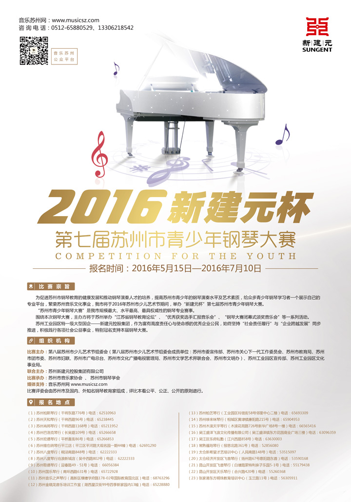 2016“新建元杯”第七届苏州市青少年钢琴大赛全城启动