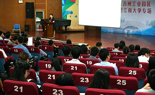 宣讲会上,园区人力资源公司总经理助理林敏向学生介绍了苏州工业园区的“简历”,苏州星诺奇科技股份有限公司和苏州恺利尔环保科技有限公司也分别介绍了企业历史和发展前景。