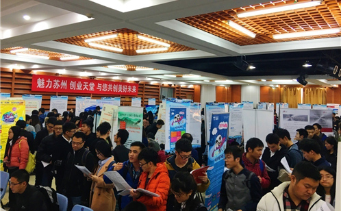 当天下午,哈工大活动中心现场聚集了1000多名学生,招聘现场场面火爆。苏州工业园区招聘企业共收到学生简历544份,硕士学历及本科学历各占50%。经过一个下午的奋战,共有154名学生与企业达成招聘意向,进入了晚间的面试环节。