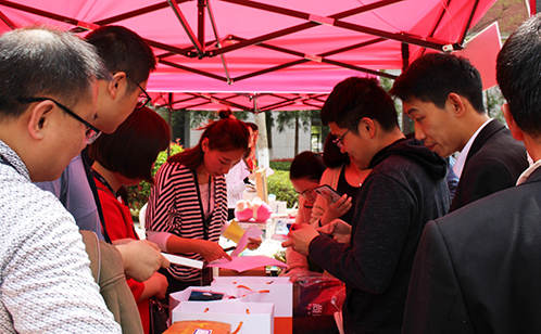 再现樱花季,爱满在园区。灿烂樱花下,不仅有浓浓的春意,更有赏花员工带来的温馨爱意。樱花大道上义卖陈列着各式各样的商品,既有仁爱学校孩子们独一无二的串珠纸巾盒、手工香皂、陶瓶、拼豆等手作工艺品,也有来自园内企业员工的爱心捐赠,从生活必须的小家电、绿植到户外的衣物、装备,从孩童的玩具、书画到成人的茶具、工艺品,种类繁多,琳琅满目。园内入驻企业IBM、通付盾、哥伦比亚、罗想、百明积极参与此次捐赠活动。建胜产业园的入驻企业川骑摩托也至现场助阵,纷纷献上自己的爱心。