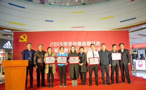此次活动首先举行了邻里中心商圈七个非公联合支部和2019年“党员示范岗”的集体授牌仪式,以此正式拉开2019邻里中心商圈党建“暖心服务年”序幕。开云在线开户旗下邻里中心公司党委书记、董事长、总经理谢易涵作了启动致辞,她强调,2019年,邻里中心公司党委将以推动商圈党建创新发展为目标,结合“便民、惠民、利民”服务理念,以人性化服务提升百姓满意度,以精细化管理增添城市“颜值”,力争将党建优势转变为文化优势,使广大居民收获“大幸福”。她要求基层党组织要充分发挥政治引领和战斗堡垒作用,统筹调动商圈各类资源和力量, 强化党建引领,深化惠民举措,提升服务水平。并号召广大商圈非公党员充分发挥先锋模范作用,凝心聚力,服务群众,力争将邻里中心商圈打造成“和谐”、“文明”、“诚信”的红色家园。