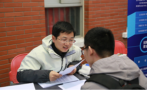 在招聘宣讲会上,新建元圆才总经理沈莺燕女士向学生们做了园区介绍,展示了非凡城市,魅力园区的特色。同时,来自园区领军人才创办的企业-苏州晶湛半导体有限公司的增荣英女士,就企业自身发展、企业责任、员工培养等,向学生们作了详细的介绍。宣讲会后,招聘活动正式开启,现场的同学们求职热情高涨,与感兴趣的企业深入交流,更有认真的同学边走边记着笔记,仔细听着企业所需要的招聘条件。