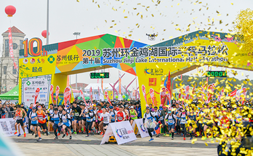 十年磨一剑,燃情金马再展园区活力!3月10日上午8时30分,随着一声激动人心的鸣枪,2019第十届苏州环金鸡湖国际半程马拉松再度开跑。今年是金马十周年,大赛共设置半程马拉松、短程马拉松、迷你马拉松和家庭亲子跑四个项目,吸引了来自51个国家及地区共计59545人的热情报名参与。共计有3万名跑者围绕“为爱奔跑”的永久主题,环绕景色优美的国家5A级金鸡湖景区,跑出健康、跑出幸福。