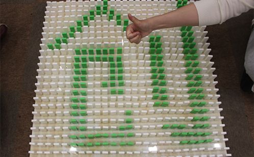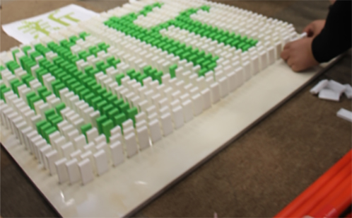 下午,六个小队根据上午的活动积分排名,依次选择了相应资源,并挑选了“协作、创新、共赢”六个字中的一个作为多米诺骨牌的完成图案,拉开了重点环节“戈德堡”的序幕。 资源不足、需设置环节较多、时间有限、多米诺骨牌重复倒塌……各个小队都遇到了各自的难题,但都没有退缩,所有队伍都完成了自己的装置与程序,在设置的物体顺利到达最终装置,推倒多米诺骨牌的那一刻,全场欢呼雀跃兴奋不已。大家以自己的实际行动,践行了本次拓展的主题。