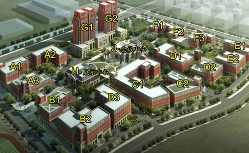 配合项目的高端产业方向,园区整体规划建筑风格为英伦古典学院派风格,并引进高科技智能环保理念和技术,打造集绿色三星建筑、智能化弱电系统、信息化办公模式的高品质企服环境。项目一二期规划结构为“一心、两轴、七组团”——“一心”:配套服务设施中心(国际会议中心);“两轴”:中央生态景观轴;“七组团”:办公组团(组团式布局)。