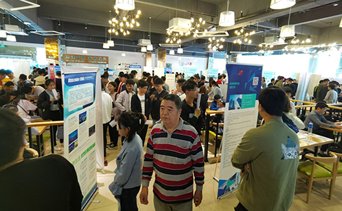 招聘会期间,多家园区企业展位前出现同学们排队等待沟通的情况,据统计,本次园区企业收到近200份简历。