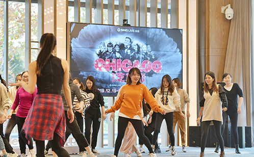 此次工作坊特邀参演过中文版《妈妈咪呀》、《德古拉》等歌舞剧的艺术家杨琳作为舞蹈讲师,中午12:30,爵士舞工作坊正式启动,在音乐剧《芝加哥》性感华丽、极富时代感的配乐氛围中,讲师带领参加学员们学习基础经典爵士舞元素——fosse风格舞步,并进行了经典曲目《ALL THAT JAZZ》的片段排演。尽管爵士舞入门门槛不低,但每位学员都仔细聆听讲师讲解,认真学习,力争用舞姿展现自己最好的一面。“利用午间时间开展舞蹈教学,既不影响正常工作,又能够舒缓压力,一举两得”。很多学员表示。