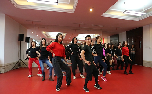 本次教学邀请了舞台经验丰富的杨琳老师,根据学员的基础水平进行了特别编排。30位来自产业园不同企业的员工,在音乐声中,跟着杨老师积极地做着热身运动。