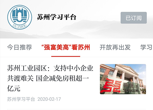 苏州工业园区:支持中小企业共渡难关 国企减免房租超一亿元