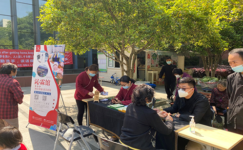 “沁霖馆”的医师为居民提供中医问诊、测量血压、现场艾灸等为民服务项目。活动现场,医师们一边为居民搭脉,一边认真观察病人的面相,细细地询问居民的病情症状,指导居民们正确认识自己的疾病,并结合居民的生活习惯讲解一些中医调理和预防保健养生知识,帮助居民养成健康的生活方式和生活习惯,社区的居民认真地接受医生专业的指导。同时,医师还为患有关节炎的居民进行中医艾灸,有针对性地一一给出了治疗建议和就医指导。