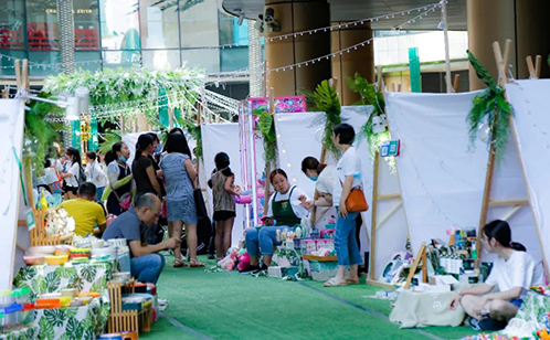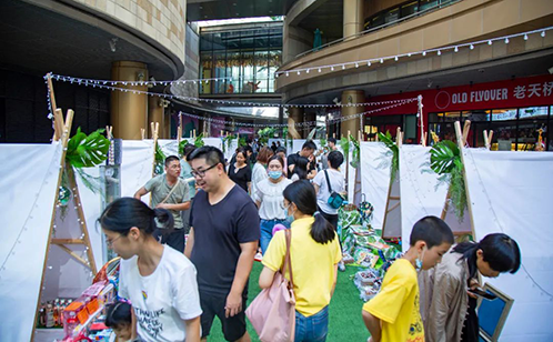 城市里的美好从来都不会少,负一楼下沉式广场同期举行的微醺雨林文创环保集市,游走于文艺、清新又有趣的市集摊位之间,融合新潮、趣味、摩登、艺术,似乎藏着人们对自然对生活的热爱,文艺又烟火,清新又有趣。