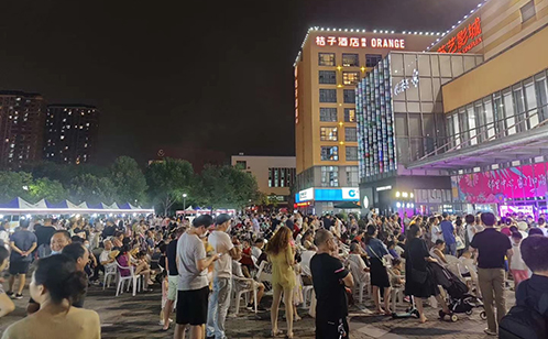 夜幕降临,华灯初上,炫美的灯光、闪烁的荧光棒、天空中飞舞的无人机,以及居民们的欢声笑语,奏响了夏日夜间热闹的乐章,精彩的舞台演出更将气氛推向了高潮。