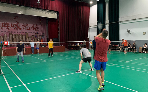 赛前,一场热身拔河赛后正式拉开比赛序幕,每组人员都面临着一局比赛就走下场的可能,竞争异常激烈。然而“八仙过海,各显神通”,选手们纷纷拿出自己的看家本领,一决高低。比赛中,选手们表现出顽强拼搏的竞技精神,也充分发挥团队协作力量。有人一出手就是快、准、狠,颇具专业水平,三下五除二拿下对手;有人棋逢对手,不分伯仲,双方你来我往,比分交替上升。白色羽球在场地上下翻飞,别有一番风景。