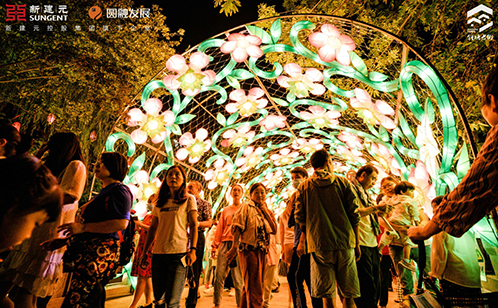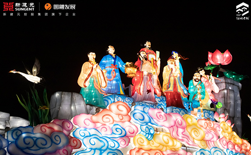 本次新建元圆融特邀苏州灯彩项目国家级非物质文化遗产代表性传承人汪筱文团队,在斜塘老街项目进行了整体灯光亮化布置。活动期间共展中国神话故事系列主题的苏州灯彩主景灯3组,观景灯6组,还有各种氛围装饰花灯1000多个。