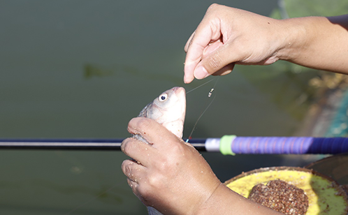 上午9时30分,裁判长一声令下,比赛正式开始。在长达两个小时的赛程中,选手们始终精神饱满,一展专业手法,调试钓具、做窝、挂饵、起竿、上鱼干净利落、一气呵成,阳光健康的垂钓场面与秀美的湖面相映成辉,好一幅“我运动,我快乐”的美丽画卷。经过角逐,本届钓鱼比赛决出了个人单尾重量、个人总重量及团体总重量名次。