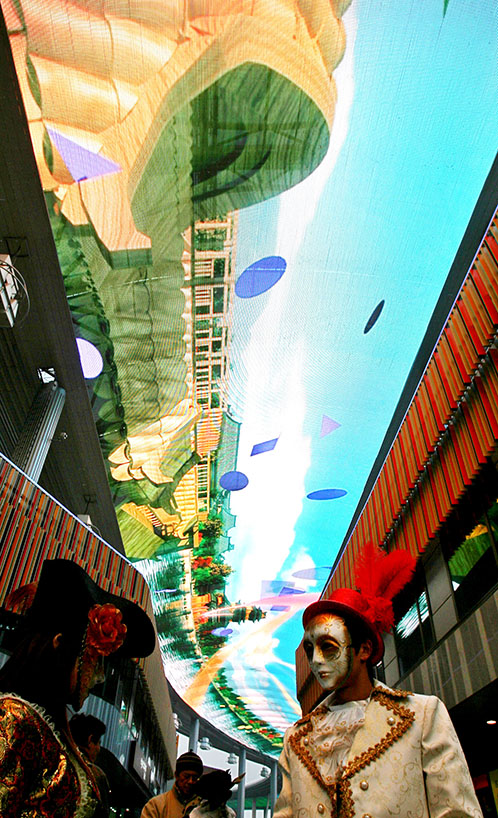 圆融天幕位于圆融时代广场,是世界上最大的LED天幕。天幕上,2000多万只超高亮度的LED灯组成一幅幅动感十足的画面;天幕下,一条充满时尚、娱乐、文化气氛的商业街区交相辉映,构建出苏州工业园区飞速发展的流光溢彩。