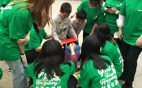 活动现场,100位志愿者陪伴特殊群体儿童一起DIY制作多肉盆栽,为爱留住精彩瞬间。活动伊始,孩子们有些拘束,但在志愿者们的耐心沟通交流下,孩子们感受到了志愿者们的爱意,慢慢地接受了邀请,共同完成了“空中投珠”“挑水过河”等多项小游戏。活动过程中孩子们流露出了微笑,用表情及行动告诉了志愿者们他们的欣喜。