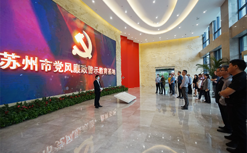 苏州市党风廉政警示教育基地总面积1900平方米,共8个展厅,3块功能区域,全方位运用声光电等多媒体技术并结合图文实物,集中展示了党的十八大以来苏州市查处的违法违纪典型案件。一段段深刻翔实的图文介绍、一个个触目惊心的案例剖析、一句句发自肺腑的忏悔反思发人深省,让大家切身感受违法违纪行为给社会、家庭、个人带来的巨大伤害。以案明纪、以案释法,这一堂深刻而鲜活的廉政警示教育课震撼着每一位党员的心灵。