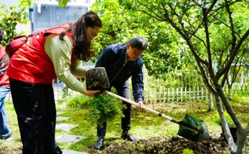 移步植树现场,党员志愿者和群众拿起工具,分工合作,有人挥锹铲土,有人扶苗踩实,一会儿时间一排排满天星苗木就树立了起来,为小区增添了一道秀丽的风景线。党员和群众齐心协力共建绿色家园,增进了彼此的情谊,还谱写了一支文明和谐的乐章,让共建共治共享的社区治理理念不断闪光,这也是对建党百年华诞的献礼。