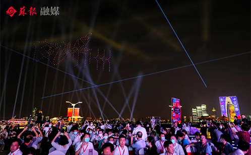 随后,伴随着无人机方阵的升空,金鸡湖上,“中秋圆月”、“夜ZUI苏州”LOGO、“运河十景”等元素逐一呈现,2021“夜ZUI苏州”活动正式开启、惊艳亮相。