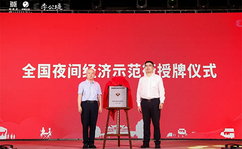 随后韩健徽与孙扬澄共同为李公堤 “全国夜间经济示范街” 揭牌,李公堤正式被授予“全国夜间经济示范街”荣誉。