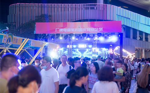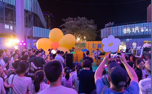 此外,天幕东街举办厂牌电音派对,特邀知名厂牌音乐人,表演当下非常受年轻人喜爱的嘻哈Hip-Hop、复古Disco、科技舞曲Techno三种音乐风格;西街举办“古典也是时尚”音乐会,演绎《天空之城》《千与千寻》《蓝色多瑙河》《夜来香》等知名曲目,从潮流到古典,在天幕下实现无缝切换,彰显潮流的不同切面。同时穿插了秋夜玩唱会,每晚进行歌手演出,营造秋夜晚风的氛围。另外,现场设置的大型气模装置,吸引了大批顾客前往拍照打卡。活动期间,每天进行的熊猫巡游,也深受小朋友及家长的喜爱。