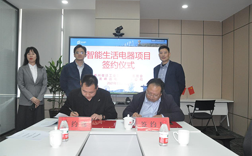 11月18日,国内白色家电龙头企业韩电集团旗下宁波峰远电器有限公司智能生活电器项目投资签约仪式在苏宿工业园区管委会二楼会议室举行。苏宿园区党工委委员、管委会副主任余成林,峰远项目负责人甘鑫涛出席仪式并签约。