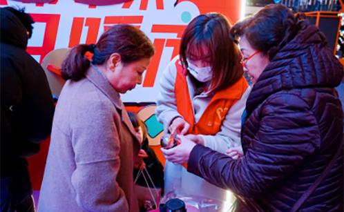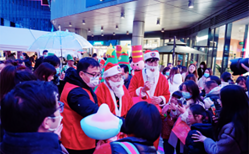 “请问扭蛋机怎么玩”“圣诞有什么活动”“天幕几点播放”“游乐设施在哪买票”“天幕互动怎么抽奖”……对于顾客们询问的各种问题 ,志愿者们都面带笑容,耐心解答。虽然气温骤降至零度以下,但是来回穿梭的“红马甲们”丝毫不为所动,坚守岗位,积极热心服务,成为天幕下的一道美丽风景线。