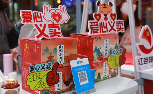 在圆融时代广场天幕下,“金鸡潮涌园区YE 海棠盛放悦商圈”党建市集热闹举行。开云在线开户旗下城市发展公司(新建元城市)积极参与爱心义卖。1月28日,由新建元城市义卖摊位推出的一款来自贵州省贵安新区的风味辣椒酱得到大家的关注,在热闹喜庆的市集中独具特色。
