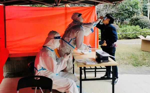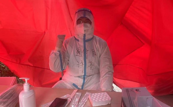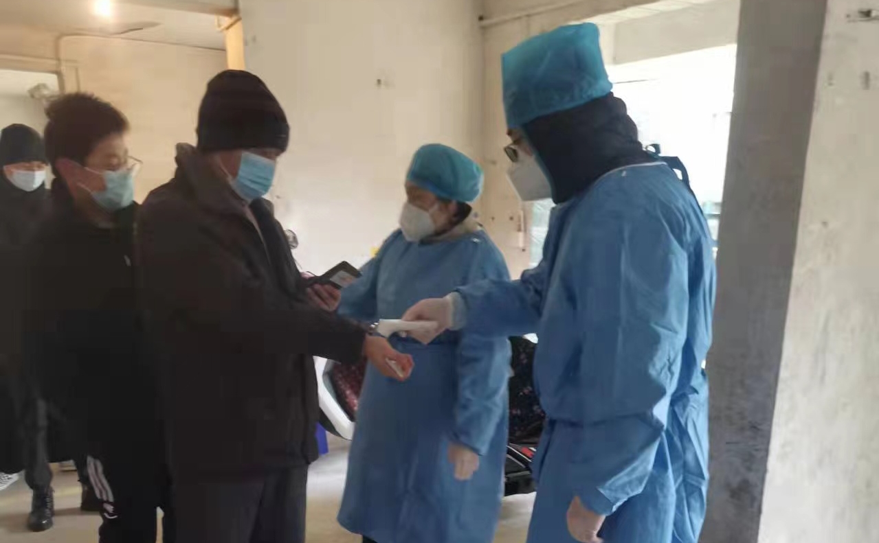 建屋楼宇党支部党员鲍阳在收到自己所住社区的志愿者招募令后,随即报了名。2月19日凌晨五点多,鲍阳和参与抗疫的医务人员、社区工作人员及其他志愿者就到达了检测点。他被安排了采样拭子包装分拆、检测完成人员发放/粘贴核酸已采样标识、维持秩序以及业主群宣传等工作。尽管当天寒风嗖嗖,鲍阳却忙得热火朝天,她说:“作为党员,我们应响应政府号召,力所能及的为抗疫尽自己绵薄之力。”