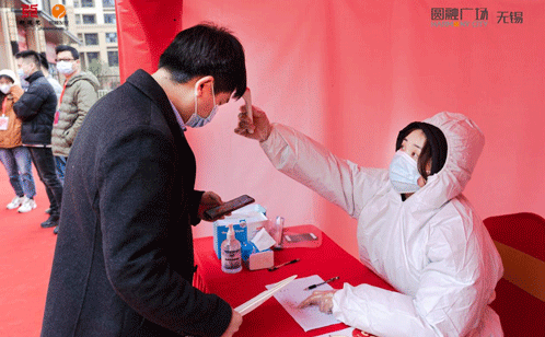 交付启动当天,正值无锡疫情的严控期,无锡宽悦二期交付组严格做好防疫措施,设置双重检查关卡,配备专人进行双码检查,对行程码有无锡以外轨迹或者黄码、红码人员一律不予接待,完全符合防疫要求才可进入交房区域。交房全程采用分批错峰交付,小区也在关键区域全面消毒,保障防疫工作的顺利进行。
