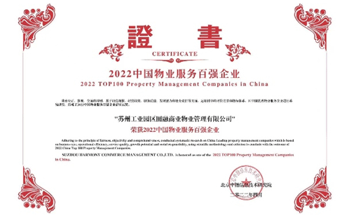 圆融商管荣膺“2022中国物业服务百强企业”