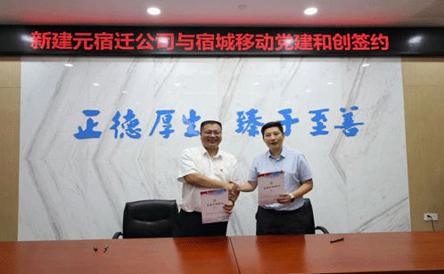 当天,新建元苏宿党支部与中国移动宿城分公司党支部就支部建设、“红色翅膀”飞地党建内涵深化等展深入座谈,并签署党建和创协议。以共建共享为基础,以合作共赢为核心,未来双方将在党员教育管理、党建惠企、产业合作、智能制造等方面做到“优势互补、资源共享”,促进党建链、产业链、创新链相融互动,更好地服务地方经济和社会发展。