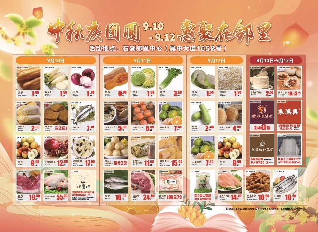 本次活动,分三天进行,活动商品涵盖早餐、蔬菜、水果、肉类、水产等,品种丰富多样,给顾客更多选择。在忙碌和幸福中,三天中秋活动圆满结束,邻里商家和周边居民皆收获满满。