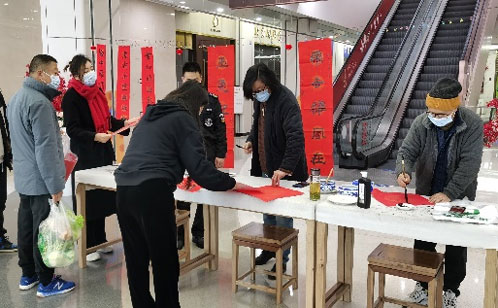 现场人头攒动,热闹非常。书法家们尽情书写着,一副副浸染墨香的春联,承载着满满的美好祝福,更为即将到来的新年增添了浓浓年味儿。参与的顾客朋友们手拿春联,喜悦之情溢于言表。