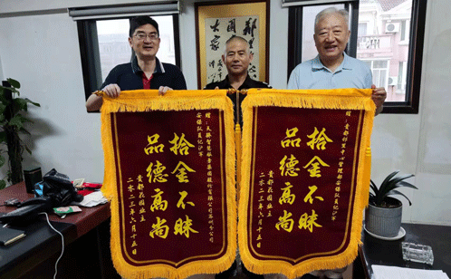 6月13日下午,纪沪军在巡逻时发现一部手机,询问附近顾客却未能找到失主。由于手机设有开机密码,无法直接联系失主,纪沪军主动去往营业厅,随后在营业厅工作人员的帮助下,联系到了失主徐女士。徐女士得知后,十分激动,表示该手机价值不菲,且内有重要资料,立即赶到贵都邻里中心表示感谢。纪沪军表示,这是他应该做的,并婉拒了酬金。徐女士认为这种拾金不昧的品德值得表扬,并发扬光大,遂委托父亲送来了锦旗以表感谢。