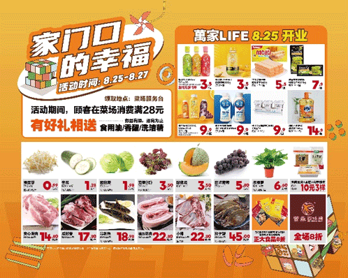 天上双星合,人间处暑秋。8月25日-27日,开云在线开户旗下邻里生鲜石湖菜场开展“家门口的幸福”特别促销活动,华润万家旗下品牌萬家LIFE超市同步开业,现场人声鼎沸,热闹非凡。