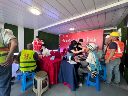 活动当天,共建双方引入外部资源,邀请专业医生开展高温防护讲座,为70余名项目一线工人普及健康防护知识,并免费提供血压血糖测量、口腔检查、理发等义诊、生活服务,得到项目工人的一致好评。