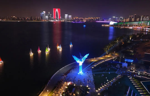活动现场,位于右岸客厅的《飞翔》雕塑正式揭幕。