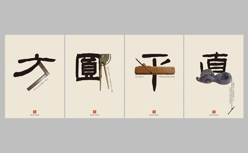 《方·圆·平·直》系列海报的主题内容源自《孟子》“继之以规矩准绳,以为方圆平直”。在表现手法上,海报巧妙地将城市建设者手中的四件普通工具“角尺、圆规、刨刀、墨斗” 融入到“方、圆、平、直”四个书法字的笔画中,并配以“廉”字印章、“廉洁自律 有你有我”口号和寓意深刻的注释,为廉政事业发声。孟子要求当政者实施仁政:一是“法先王”;二是选贤才。所谓“不以规矩,不能成方圆”的说法成为了人们在生活中常用的格言警句,其思想内涵与反腐倡廉及本次活动的主题十分契合。整个海报内容言简意赅,主题鲜明,起到了“在自律的同时,警醒他人,号召全社会参与”的目的。